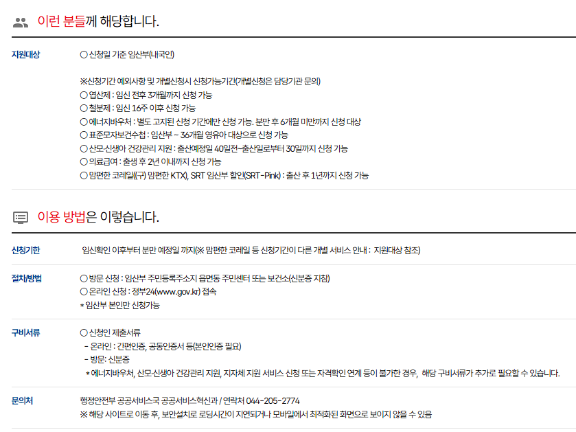 서비스마다 사용 가능한 시기가 다르므로 임신 확인 즉시 신청하세요!